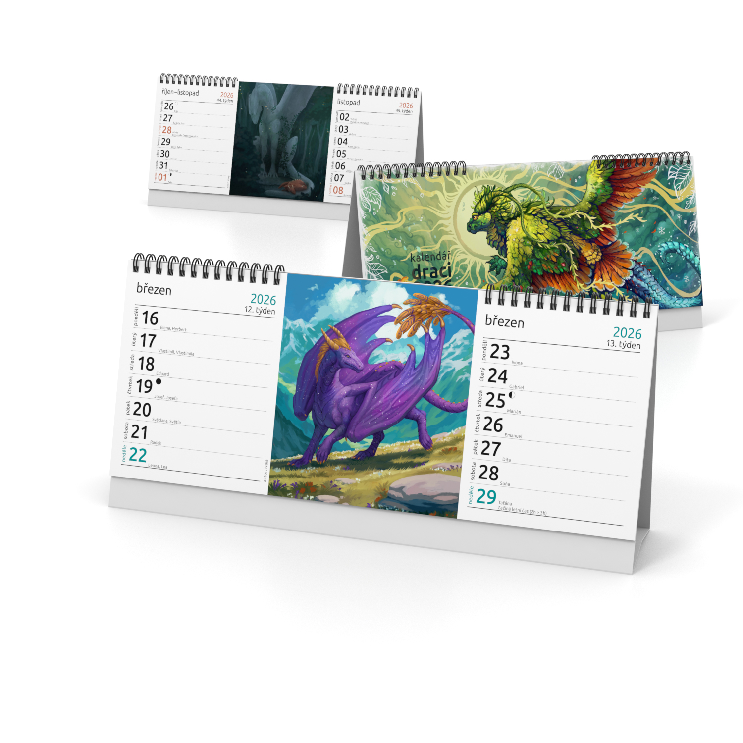 Stolní kalendář Draci 2026 (týdenní) s bonusy – doprodej