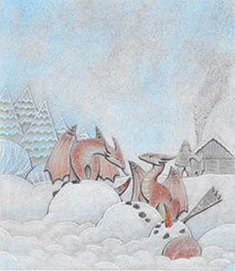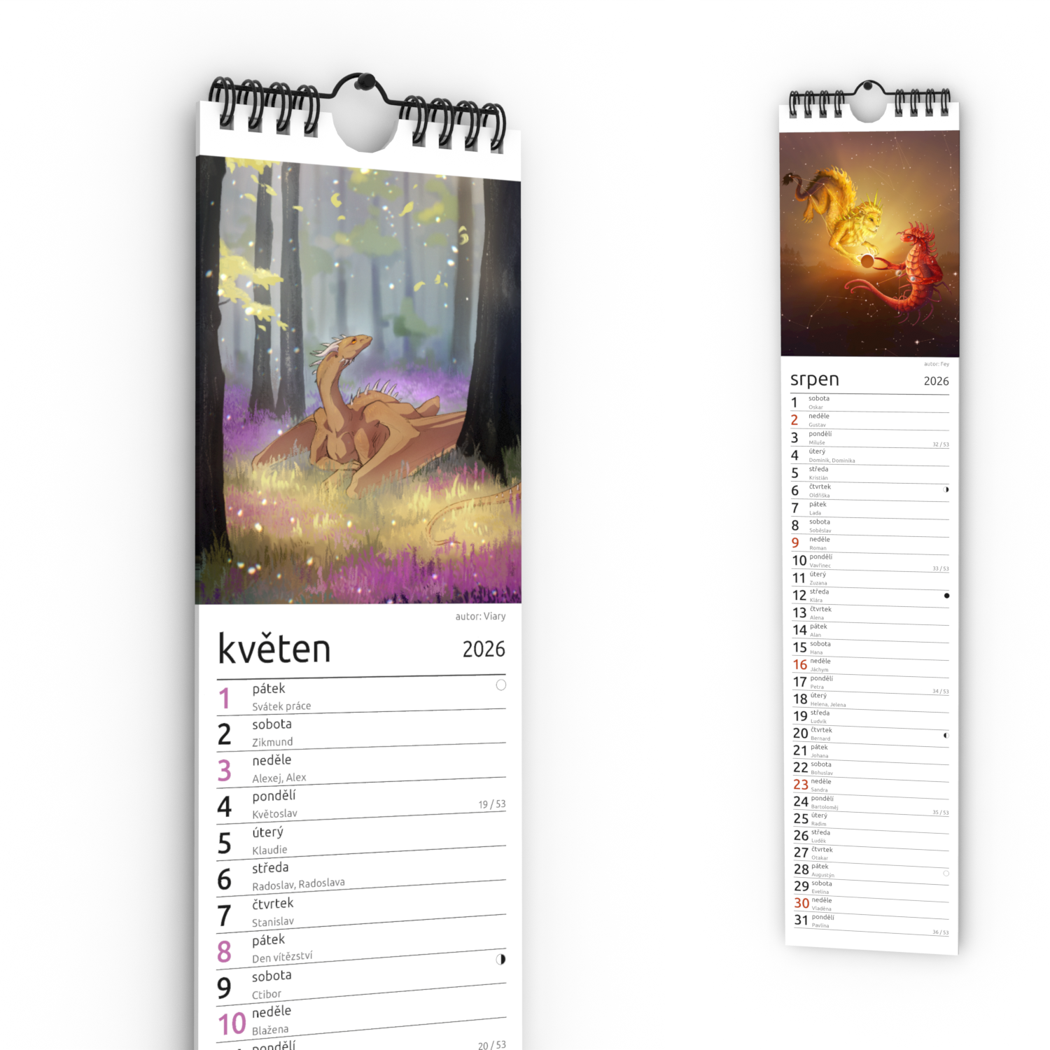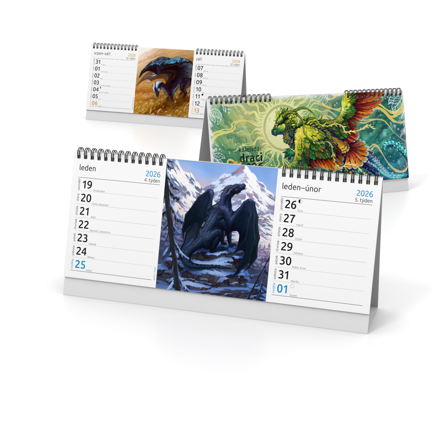 V kalendáři naleznete 1 celostránkovou a dále 28 plnobarevných dračích ilustrací.